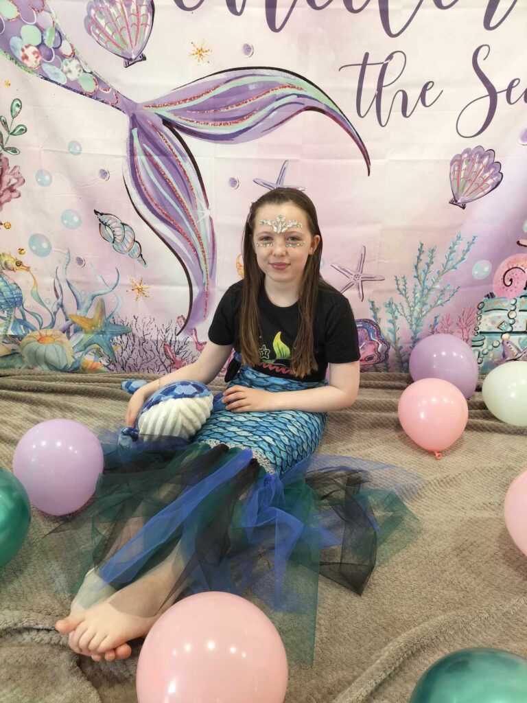 This includes 60 minutes of a mermaid or mono fin swimming, underwater photos of your party and 30 minutes food time and 60 minutes dry side makeup dress up and photoshoot.